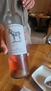 Πώς θα μπορούσαμε να μη δοκιμάσουμε και το κρασί που αποκτά ζωή σε απόσταση λίγων μέτρων από τις μουριές που μας περιβάλλουν; Χρώμα λες και ξεπήδησε από ζωγραφιά, όλη η Ελλάδα στη μύτη μας και μια ανάλαφρη αίσθηση φρούτων στο στόμα, όλα αυτά υπό την ετικέτα του ξενοδοχείου που μας φιλοξενεί.