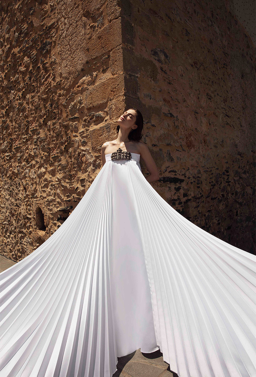 Η εντυπωσιακή Denise Eleftheriou, η δουλειά της οποίας στάθηκε αφορμή για το ταξίδι μας, είναι σχεδιάστρια ρούχων costum-made και bridal, η οποία ξεχωρίζει για τις τεχνικές υψηλής ραπτικής που χρησιμοποιεί στις δημιουργίες της. Είναι απόφοιτη του Istituto Marangoni στο Μιλάνο, μιας από τις σπουδαιότερες σχολές μόδας στον κόσμο. Μέλος στην Ελληνική Ένωση Σχεδιαστων Μόδας, από το 2024 ζει μόνιμα στην Αθήνα, όπου την επισκέπτονται γυναίκες από όλο τον κόσμο γνωρίζοντας τον σεβασμό και την προσοχή που δίνει σε κάθε προσωπικότητα ξεχωριστά. Δεν είναι άλλωστε τυχαίο ότι σπουδαίες Ελληνίδες την εμπιστεύονται επανειλημμένα για τις εμφανίσεις τους.