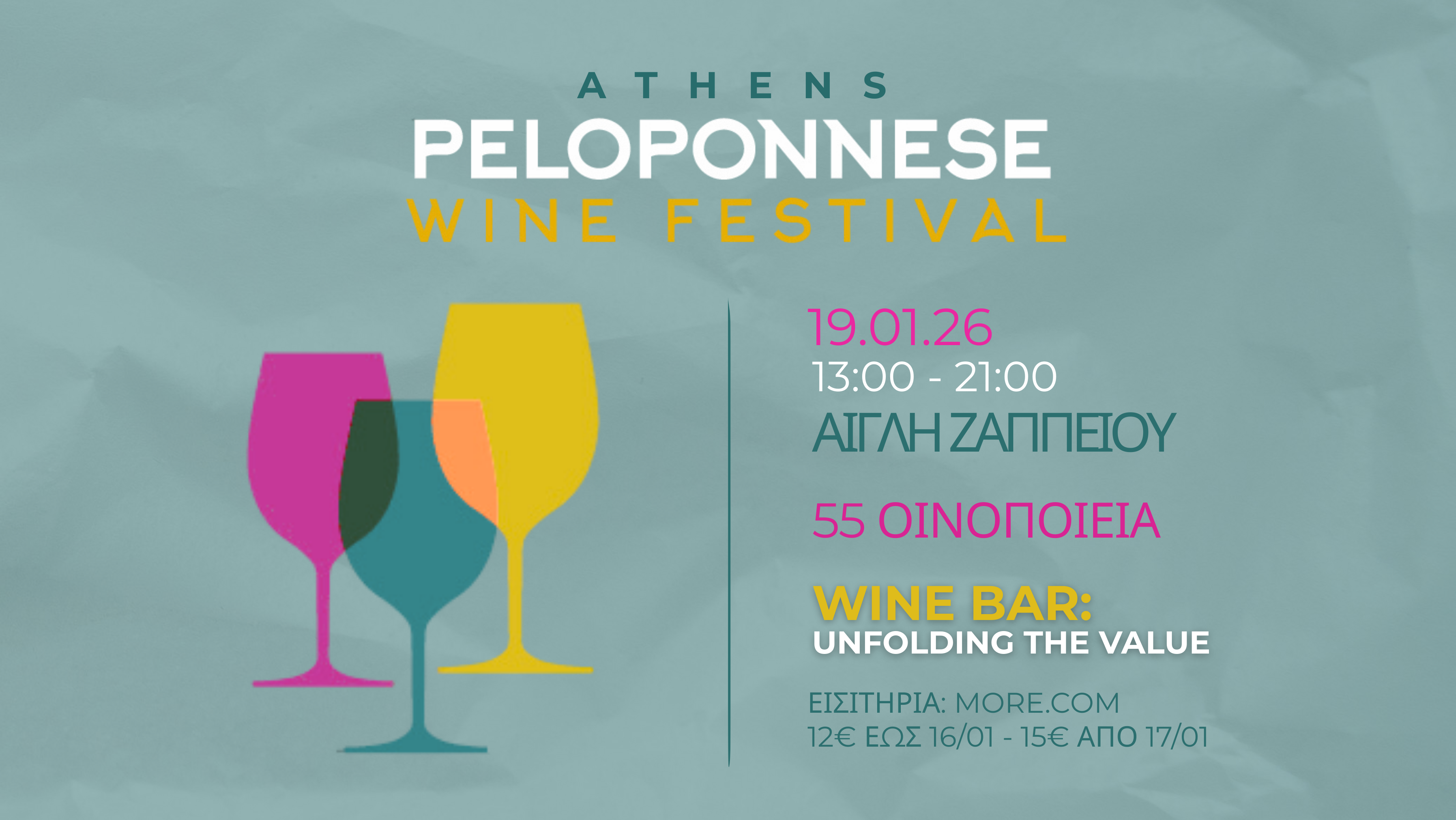 Το Peloponnese Wine Festival, ο καθιερωμένος πλέον ετήσιος θεσμός για την αθηναϊκή οινική κοινότητα, επιστρέφει τη Δευτέρα 19 Ιανουαρίου 2026 στην Αίγλη Ζαππείου. Οι «προβολείς» στρέφονται στους δυναμικούς παραγωγούς της Πελοποννήσου, στις ιστορικές ζώνες της και στα κρασιά που εκφράζουν τον μεγαλύτερο και πιο εμβληματικό αμπελώνα της Ελλάδας.