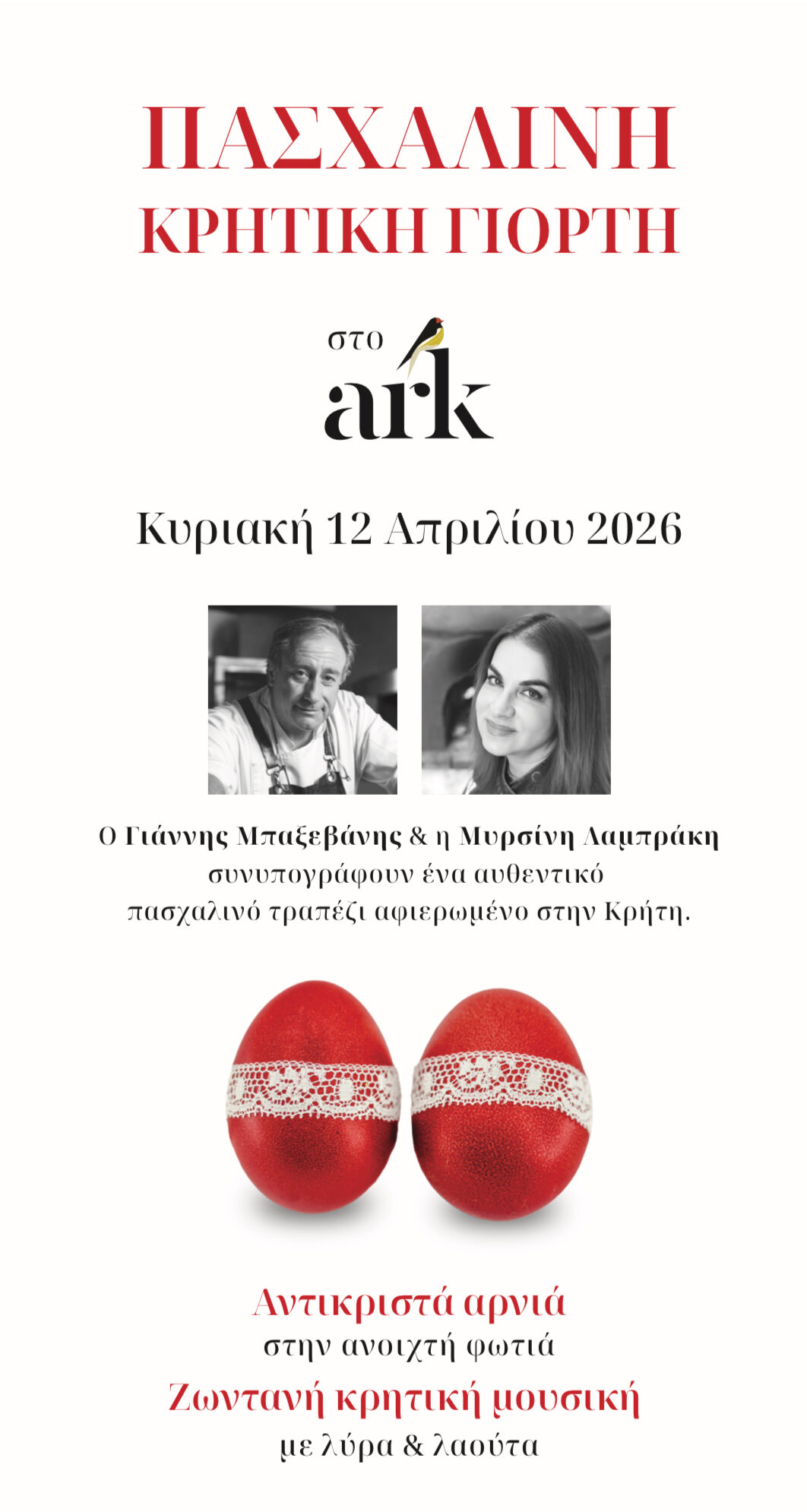 Φέτος το Πάσχα, το ταξίδι στη γεύση είναι πιο κοντινό από ποτέ. Στο εστιατόριο Ark, η Κρήτη συναντά το θαλασσινό αεράκι της αθηναϊκής ριβιέρας και οι γεύσεις και η μουσική της κρητικής γης ξεσηκώνουν τις αισθήσεις.