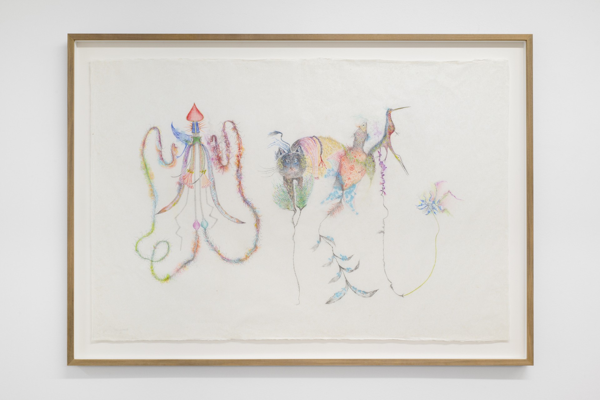 Με ενδιαφέρει η διήγηση της ιστορίας αυτών των φανταστικών όντων. Όσο προχωράει η διαδικασία, η αρχική αναγνώριση των μορφών που φτιάχνω υποχωρεί και η παρατήρηση καταγράφεται όπως βιώνεται εσωτερικά. Τα υβριδικά αυτά πλάσματα εσωκλείουν άλλες μορφές μέσα τους και είναι σαν φτιάχνεται ένας μυθικός κήπος.